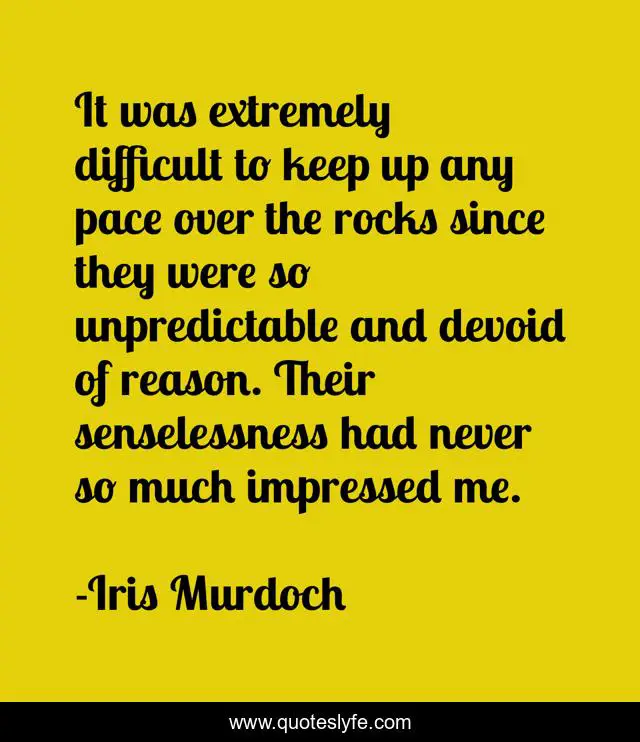 This page presents the quote "It was extremely difficult to keep up any pace over the rocks since they were so unpredictable and devoid of reason. Their senselessness had never so much impressed me.". Author of this quote is Iris Murdoch. This quote is about nature, rocks,.