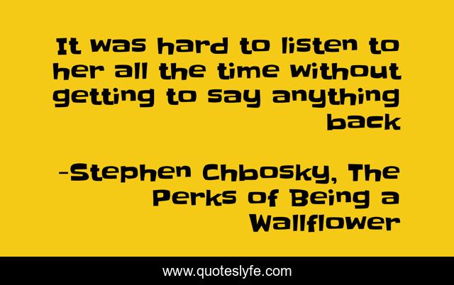 "Stephen Chbosky, The Perks of Being a Wallflower Quotes." Quoteslyfe.com, 2025. Mon. 08 Dec. 2025. <https://www.quoteslyfe.com/quote/It-was-hard-to-listen-to-her-168851>.
