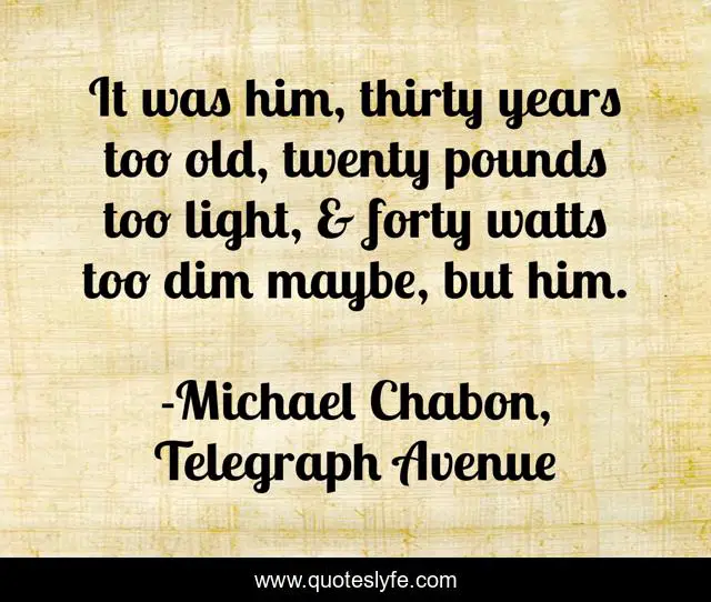 "Michael Chabon, Telegraph Avenue Quotes." Quoteslyfe.com, 2025. Sat. 06 Dec. 2025. <https://www.quoteslyfe.com/quote/It-was-him-thirty-years-too-old-209364>.