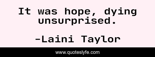 This page presents the quote "It was hope, dying unsurprised.". Author of this quote is Laini Taylor. This quote is about beautiful, resonant,.