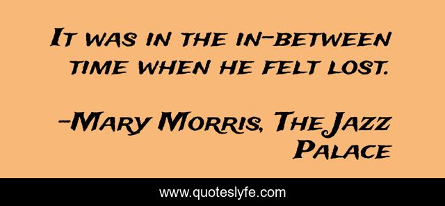 This page presents the quote "It was in the in-between time when he felt lost.". Author of this quote is Mary Morris, The Jazz Palace. .