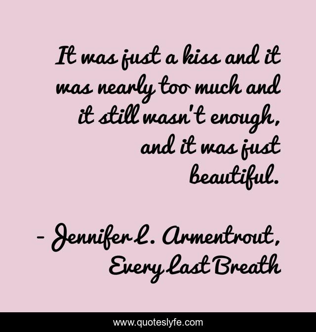 This page presents the quote "It was just a kiss and it was nearly too much and it still wasn't enough, and it was just beautiful.". Author of this quote is Jennifer L. Armentrout, Every Last Breath. This quote is about romance, ya, paranormal-romance,.