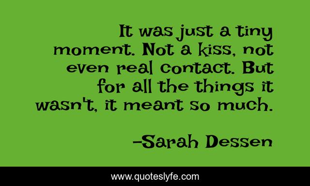 This page presents the quote "It was just a tiny moment. Not a kiss, not even real contact. But for all the things it wasn't, it meant so much.". Author of this quote is Sarah Dessen. This quote is about friendship, love, affection, sweet,.
