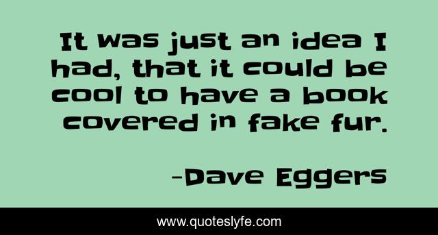This page presents the quote "It was just an idea I had, that it could be cool to have a book covered in fake fur.". Author of this quote is Dave Eggers. This quote is about book, idea, fake,.