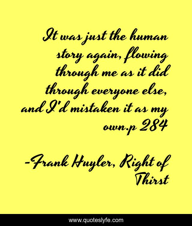This page presents the quote "It was just the human story again, flowing through me as it did through everyone else, and I'd mistaken it as my own.p 284". Author of this quote is Frank Huyler, Right of Thirst. .