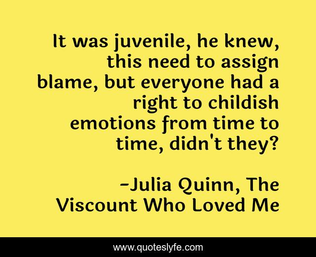 "Julia Quinn, The Viscount Who Loved Me Quotes." Quoteslyfe.com, 2025. Mon. 08 Dec. 2025. <https://www.quoteslyfe.com/quote/It-was-juvenile-he-knew-this-need-18946>.