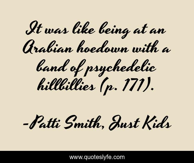This page presents the quote "It was like being at an Arabian hoedown with a band of psychedelic hillbillies (p. 171).". Author of this quote is Patti Smith, Just Kids. .