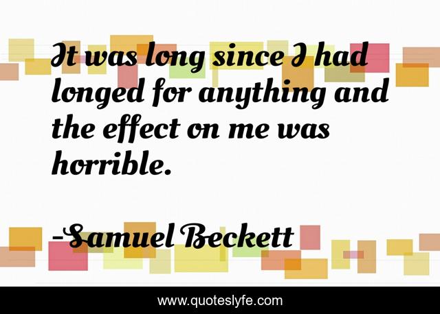 This page presents the quote "It was long since I had longed for anything and the effect on me was horrible.". Author of this quote is Samuel Beckett. This quote is about desire, longing, pain, suffering, time, change,.