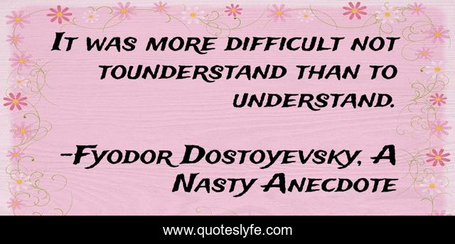 "Fyodor Dostoyevsky, A Nasty Anecdote Quotes." Quoteslyfe.com, 2025. Fri. 05 Dec. 2025. <https://www.quoteslyfe.com/quote/It-was-more-difficult-not-tounderstand-than-90742>.