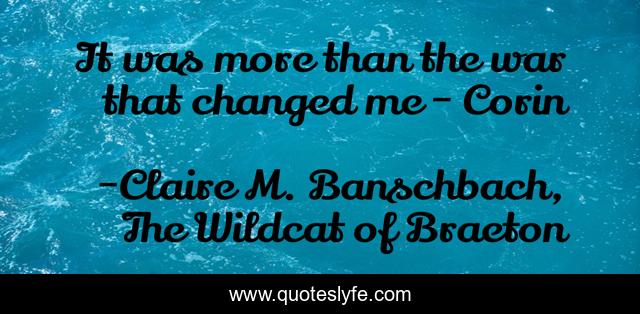 This page presents the quote "It was more than the war that changed me - Corin". Author of this quote is Claire M. Banschbach, The Wildcat of Braeton. This quote is about action, fantasy, adventure, family,.