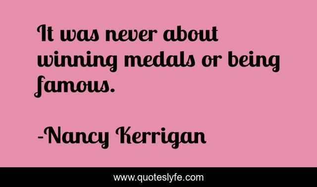This page presents the quote "It was never about winning medals or being famous.". Author of this quote is Nancy Kerrigan. This quote is about being, winning,.