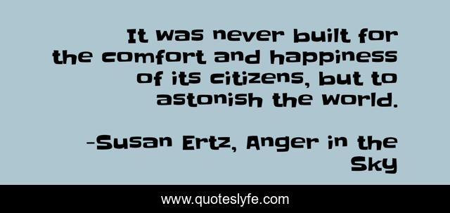 This page presents the quote "It was never built for the comfort and happiness of its citizens, but to astonish the world.". Author of this quote is Susan Ertz, Anger in the Sky. This quote is about cities, new-york-city,.