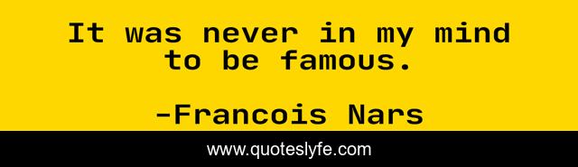 This page presents the quote "It was never in my mind to be famous.". Author of this quote is Francois Nars. .