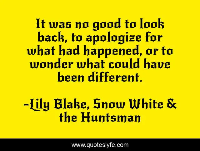 This page presents the quote "It was no good to look back, to apologize for what had happened, or to wonder what could have been different.". Author of this quote is Lily Blake, Snow White & the Huntsman. This quote is about past, regret,.