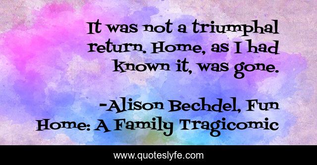 "Alison Bechdel, Fun Home: A Family Tragicomic Quotes." Quoteslyfe.com, 2025. Fri. 05 Dec. 2025. <https://www.quoteslyfe.com/quote/It-was-not-a-triumphal-return-Home-182452>.