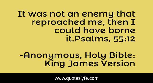 This page presents the quote "It was not an enemy that reproached me, then I could have borne it.Psalms, 55:12". Author of this quote is Anonymous, Holy Bible: King James Version. .