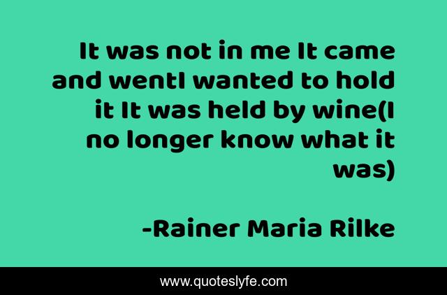 This page presents the quote "It was not in me It came and wentI wanted to hold it It was held by wine(I no longer know what it was)". Author of this quote is Rainer Maria Rilke. This quote is about poetry, happiness,.