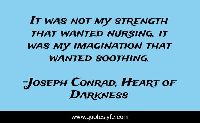 This page presents the quote "It was not my strength that wanted nursing, it was my imagination that wanted soothing.". Author of this quote is Joseph Conrad, Heart of Darkness. This quote is about imagination, strength, nursing, recovery,.