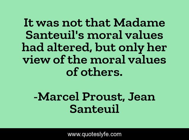 This page presents the quote "It was not that Madame Santeuil's moral values had altered, but only her view of the moral values of others.". Author of this quote is Marcel Proust, Jean Santeuil. This quote is about moral-values, morals,.