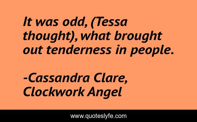 This page presents the quote "It was odd, (Tessa thought), what brought out tenderness in people.". Author of this quote is Cassandra Clare, Clockwork Angel. This quote is about quote, cassandra-clare, book, truth, tenderness,.