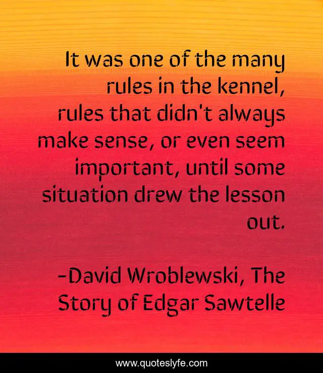 This page presents the quote "It was one of the many rules in the kennel, rules that didn't always make sense, or even seem important, until some situation drew the lesson out.". Author of this quote is David Wroblewski, The Story of Edgar Sawtelle. .