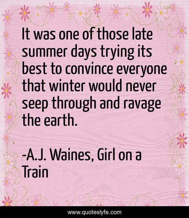"A.J. Waines, Girl on a Train Quotes." Quoteslyfe.com, 2025. Sun. 07 Dec. 2025. <https://www.quoteslyfe.com/quote/It-was-one-of-those-late-summer-101275>.