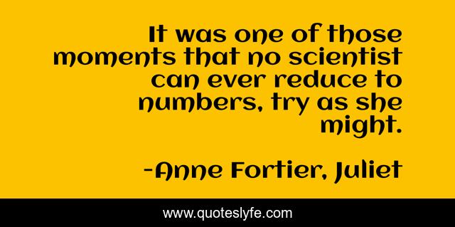 This page presents the quote "It was one of those moments that no scientist can ever reduce to numbers, try as she might.". Author of this quote is Anne Fortier, Juliet. This quote is about moments, life,.