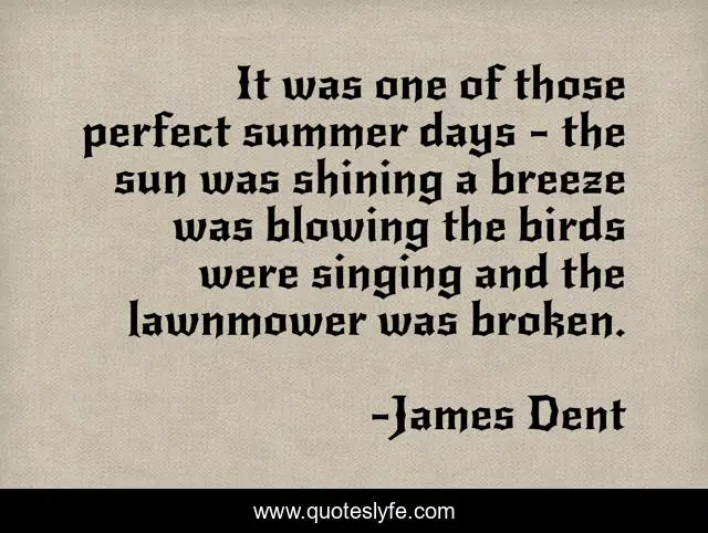 This page presents the quote "It was one of those perfect summer days - the sun was shining a breeze was blowing the birds were singing and the lawnmower was broken.". Author of this quote is James Dent. .
