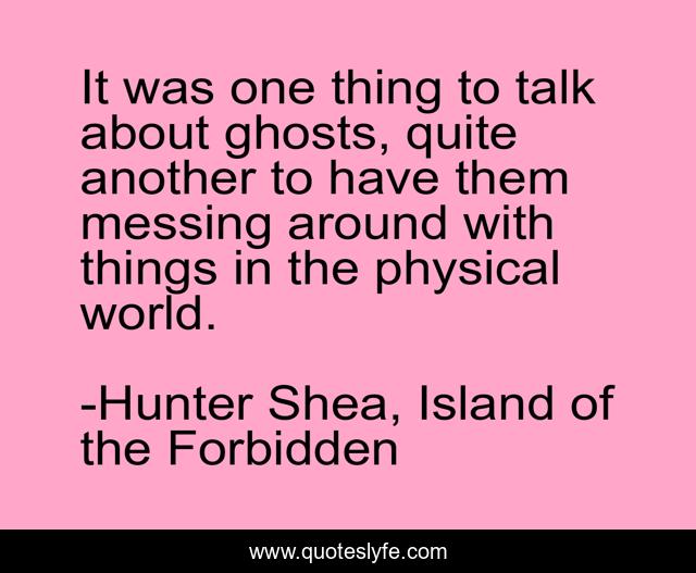 This page presents the quote "It was one thing to talk about ghosts, quite another to have them messing around with things in the physical world.". Author of this quote is Hunter Shea, Island of the Forbidden. This quote is about horror, paranormal, haunted-house, ebs, ghosts, thriller,.