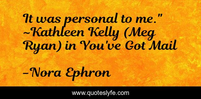 This page presents the quote "It was personal to me." ~Kathleen Kelly (Meg Ryan) in You've Got Mail". Author of this quote is Nora Ephron. .
