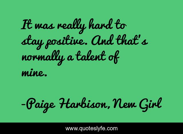 This page presents the quote "It was really hard to stay positive. And that's normally a talent of mine.". Author of this quote is Paige Harbison, New Girl. This quote is about sadness, new-girl, depression, paige-harbison,.