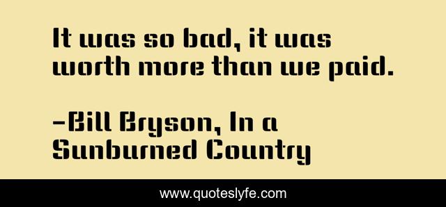 "Bill Bryson, In a Sunburned Country Quotes." Quoteslyfe.com, 2025. Mon. 08 Dec. 2025. <https://www.quoteslyfe.com/quote/It-was-so-bad-it-was-worth-164440>.