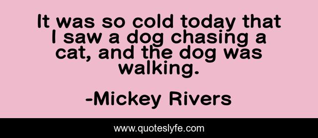 This page presents the quote "It was so cold today that I saw a dog chasing a cat, and the dog was walking.". Author of this quote is Mickey Rivers. This quote is about walking, dog, today,.