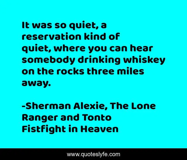 "Sherman Alexie, The Lone Ranger and Tonto Fistfight in Heaven Quotes." Quoteslyfe.com, 2025. Mon. 08 Dec. 2025. <https://www.quoteslyfe.com/quote/It-was-so-quiet-a-reservation-kind-114376>.