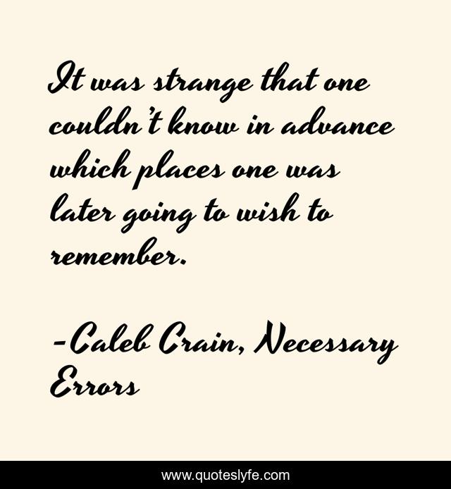 This page presents the quote "It was strange that one couldn’t know in advance which places one was later going to wish to remember.". Author of this quote is Caleb Crain, Necessary Errors. .
