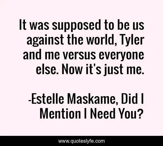 This page presents the quote "It was supposed to be us against the world, Tyler and me versus everyone else. Now it's just me.". Author of this quote is Estelle Maskame, Did I Mention I Need You?. This quote is about romance, teen, novel, young-adult, contemporary,.