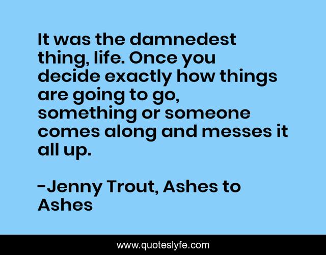 "Jenny Trout, Ashes to Ashes Quotes." Quoteslyfe.com, 2025. Sat. 06 Dec. 2025. <https://www.quoteslyfe.com/quote/It-was-the-damnedest-thing-life-Once-247712>.