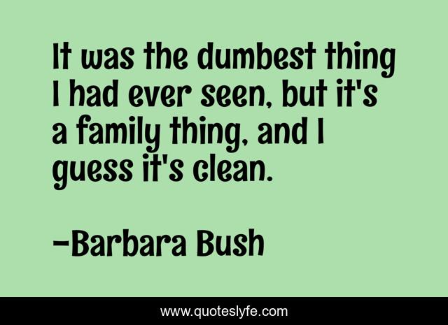 This page presents the quote "It was the dumbest thing I had ever seen, but it's a family thing, and I guess it's clean.". Author of this quote is Barbara Bush. This quote is about seen, guess, clean,.