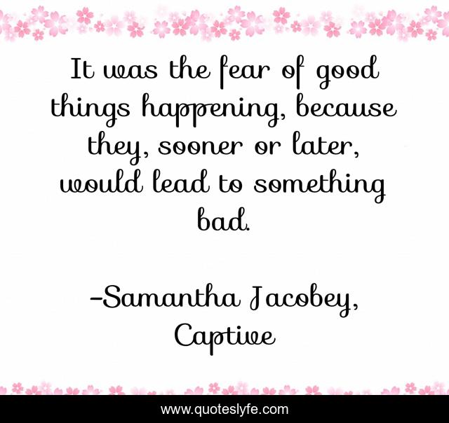 "Samantha Jacobey, Captive Quotes." Quoteslyfe.com, 2025. Sun. 07 Dec. 2025. <https://www.quoteslyfe.com/quote/It-was-the-fear-of-good-things-146465>.