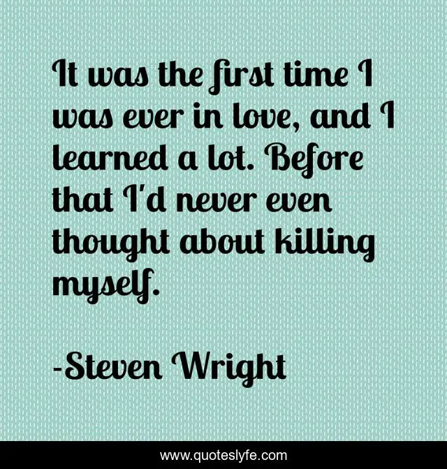 This page presents the quote "It was the first time I was ever in love, and I learned a lot. Before that I'd never even thought about killing myself.". Author of this quote is Steven Wright. This quote is about humor, love, affection,.