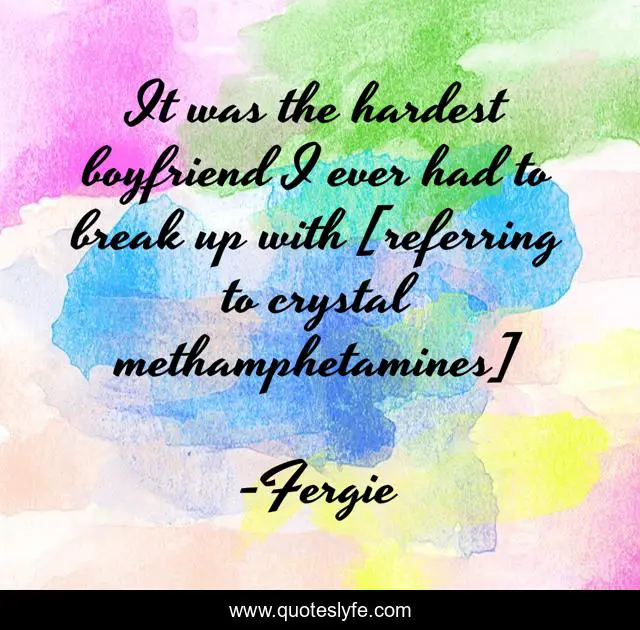 This page presents the quote "It was the hardest boyfriend I ever had to break up with [referring to crystal methamphetamines]". Author of this quote is Fergie. This quote is about life, drugs, musician, crystal-meth, female, addiction,.