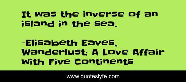 "Elisabeth Eaves, Wanderlust: A Love Affair with Five Continents Quotes." Quoteslyfe.com, 2025. Sat. 06 Dec. 2025. <https://www.quoteslyfe.com/quote/It-was-the-inverse-of-an-island-137336>.