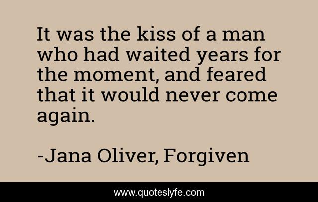 This page presents the quote "It was the kiss of a man who had waited years for the moment, and feared that it would never come again.". Author of this quote is Jana Oliver, Forgiven. This quote is about riley-blackthorne, kiss, denver-beck,.