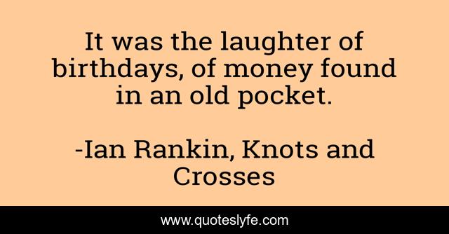 This page presents the quote "It was the laughter of birthdays, of money found in an old pocket.". Author of this quote is Ian Rankin, Knots and Crosses. .