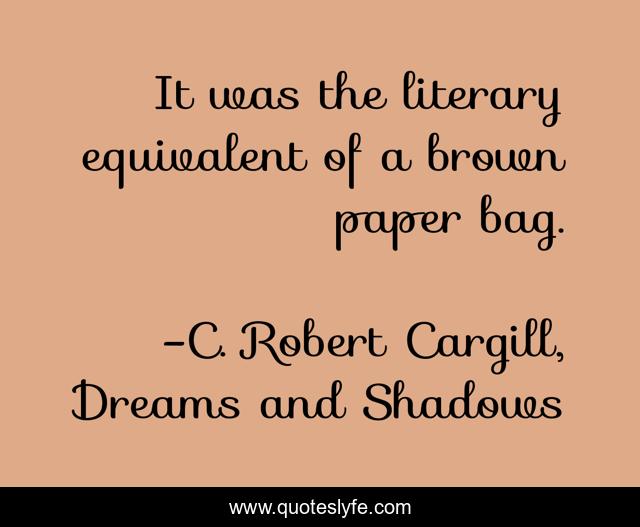 This page presents the quote "It was the literary equivalent of a brown paper bag.". Author of this quote is C. Robert Cargill, Dreams and Shadows. .