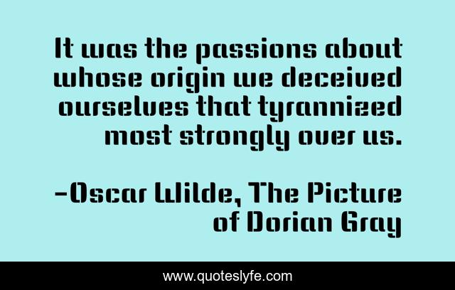 This page presents the quote "It was the passions about whose origin we deceived ourselves that tyrannized most strongly over us.". Author of this quote is Oscar Wilde, The Picture of Dorian Gray. .