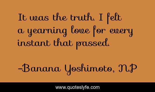 This page presents the quote "It was the truth. I felt a yearning love for every instant that passed.". Author of this quote is Banana Yoshimoto, N.P. .