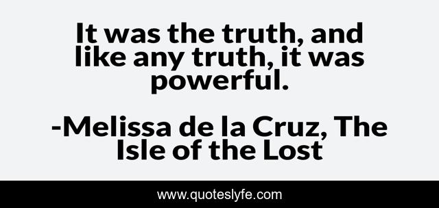 This page presents the quote "It was the truth, and like any truth, it was powerful.". Author of this quote is Melissa de la Cruz, The Isle of the Lost. This quote is about powerful, truth,.