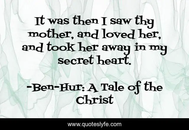 This page presents the quote "It was then I saw thy mother, and loved her, and took her away in my secret heart.". Author of this quote is Ben-Hur: A Tale of the Christ. This quote is about love, affection, mother,.