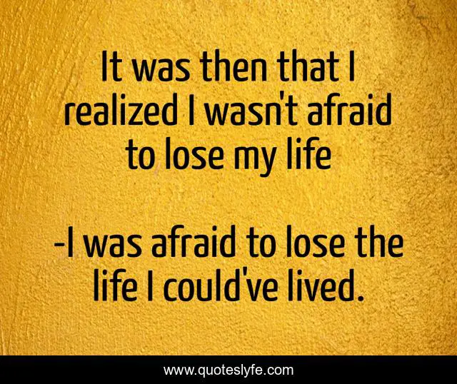 "I was afraid to lose the life I could've lived. Quotes." Quoteslyfe.com, 2025. Fri. 05 Dec. 2025. <https://www.quoteslyfe.com/quote/It-was-then-that-I-realized-I-241691>.